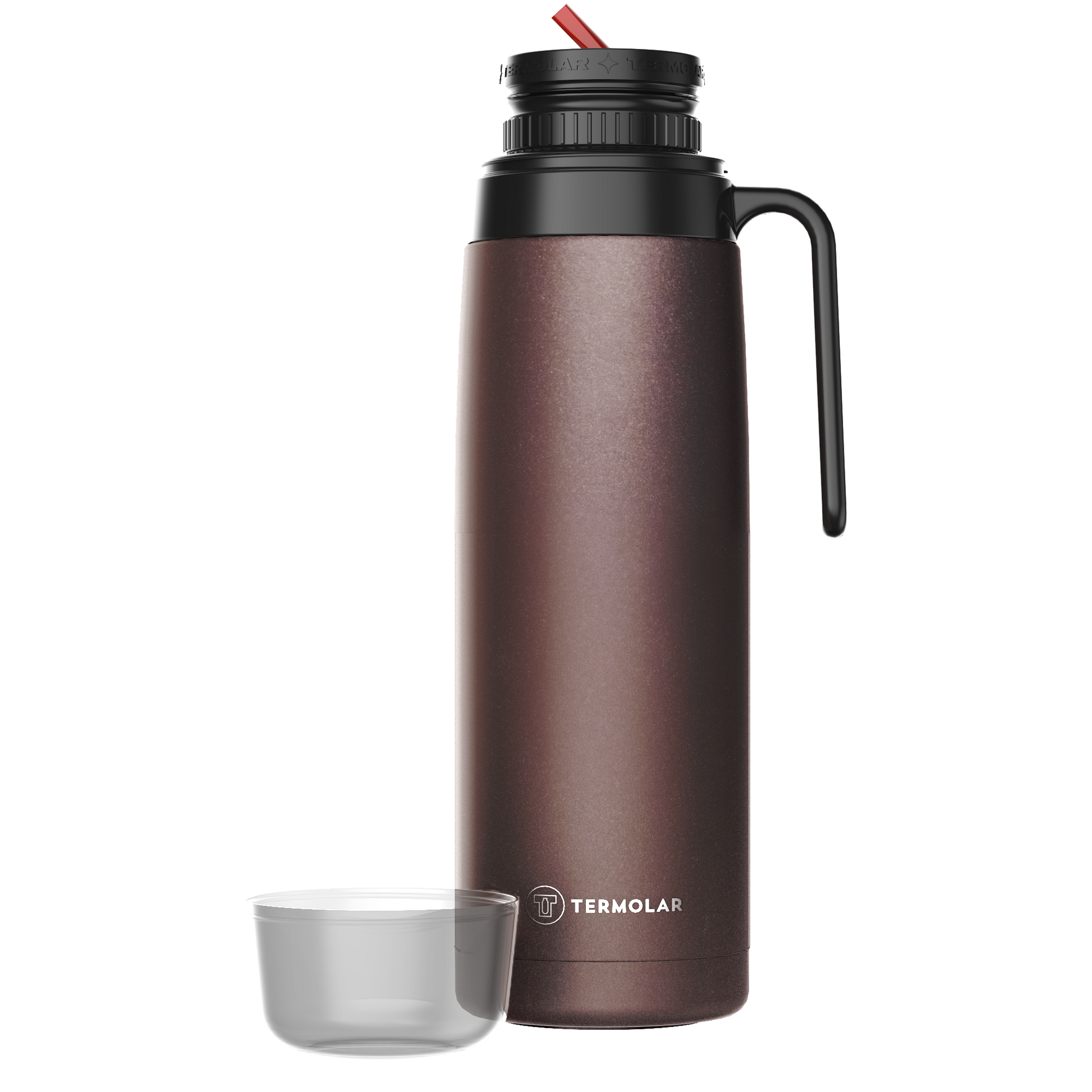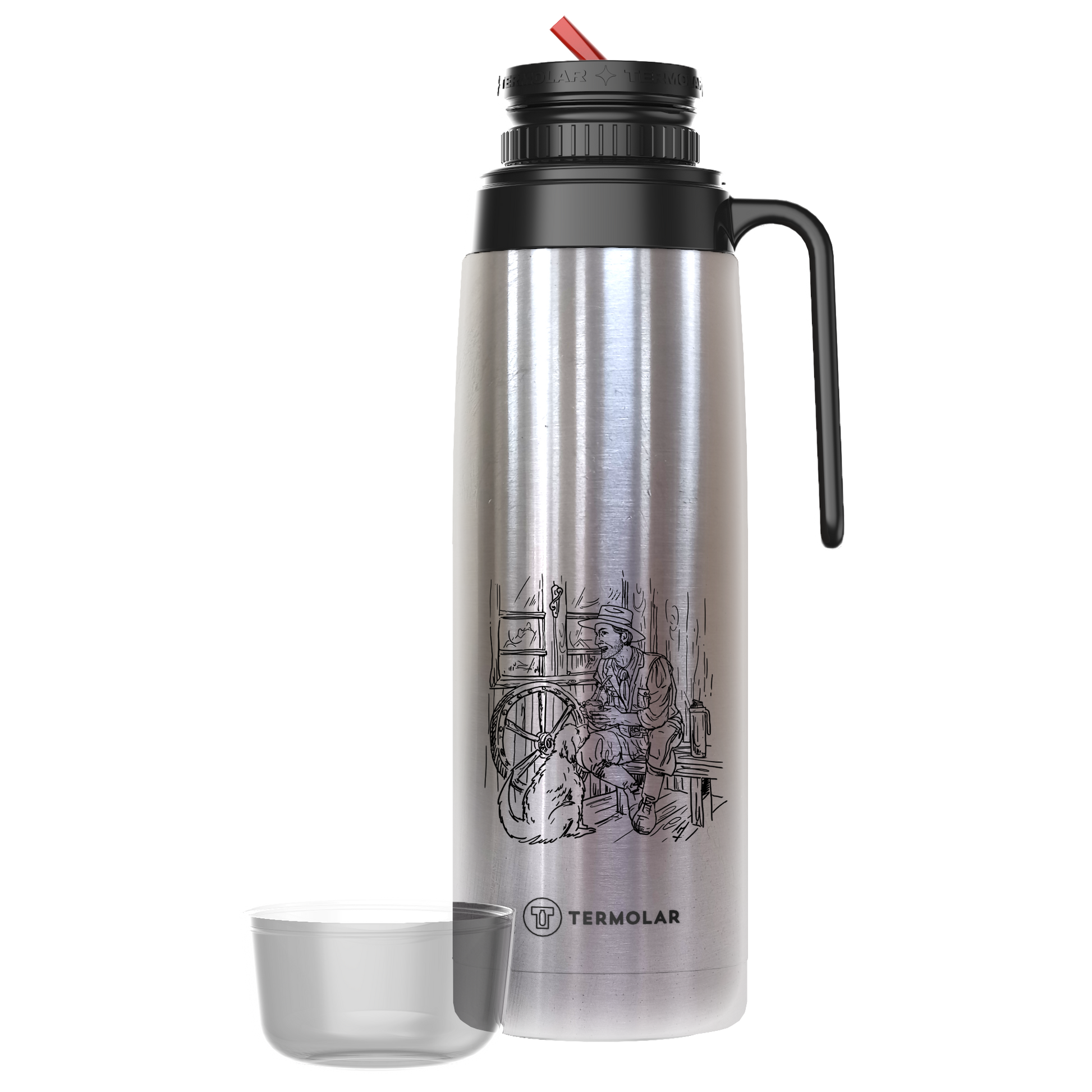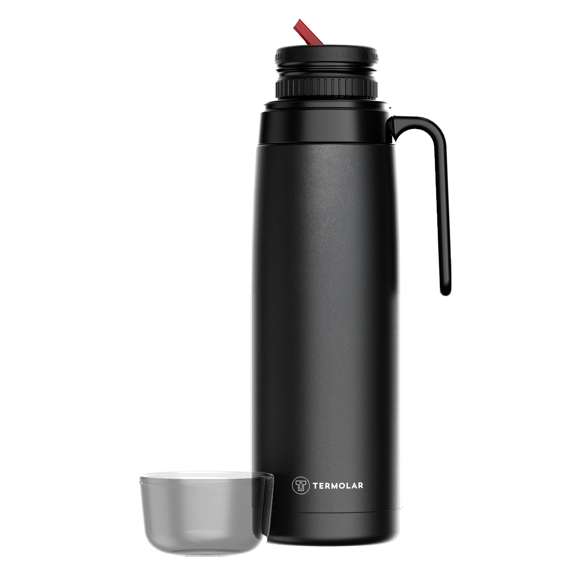 Termolar R-Evolution in der neuen Version click mate. Wie zuvor in der selben Qualität, aber mit neuem Deckel "click mate". Durch einen einfachen Druck auf den Deckel fährt der "pico cebador " einfach hoch und man kann das Wasser entspannt eingießen.