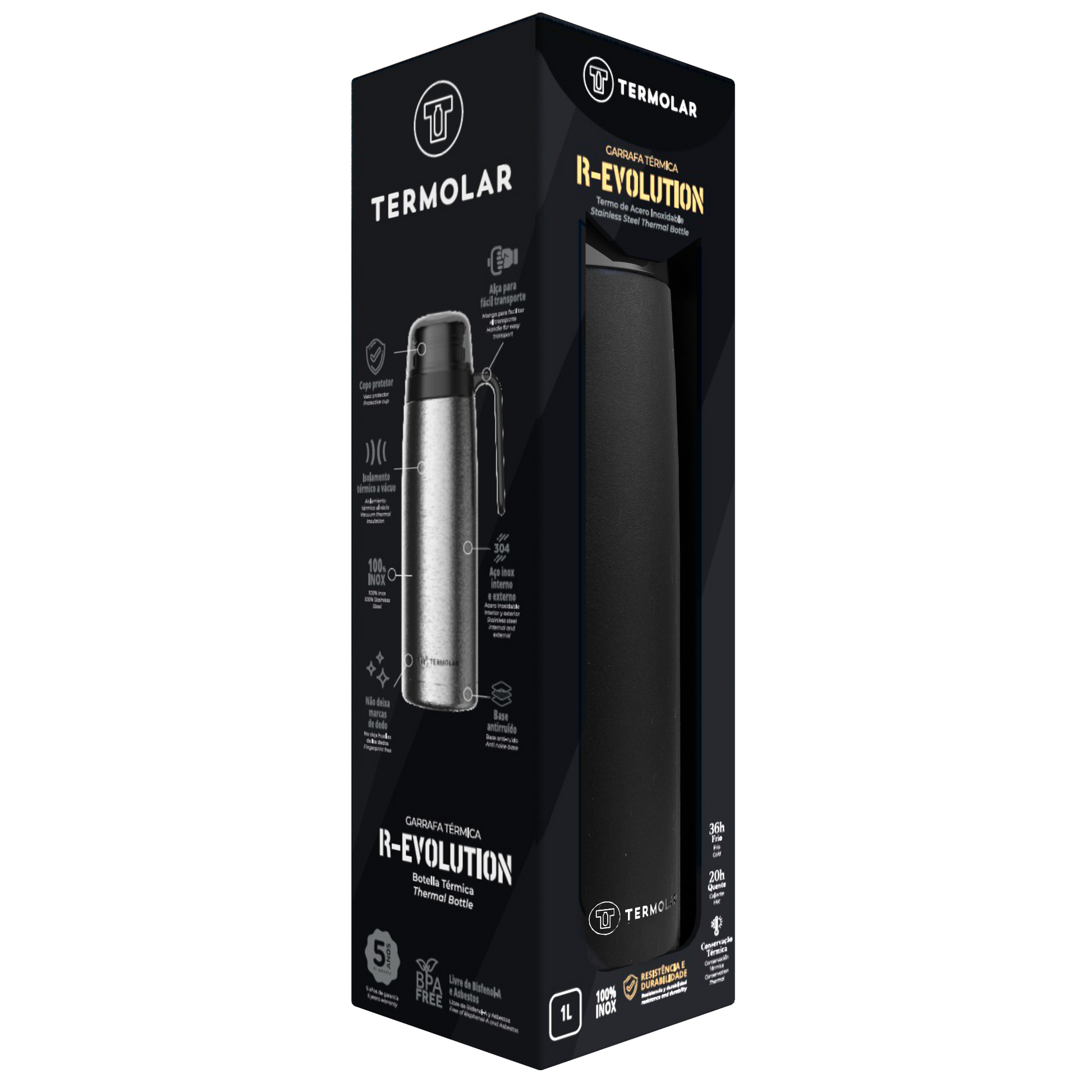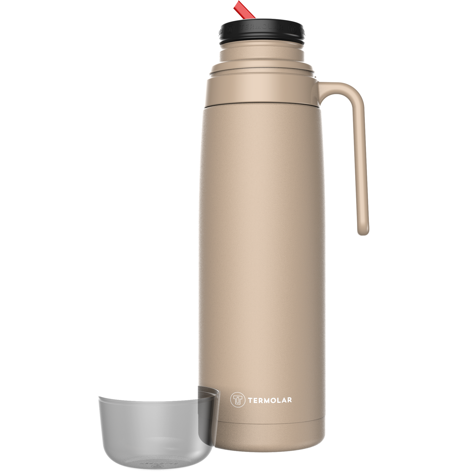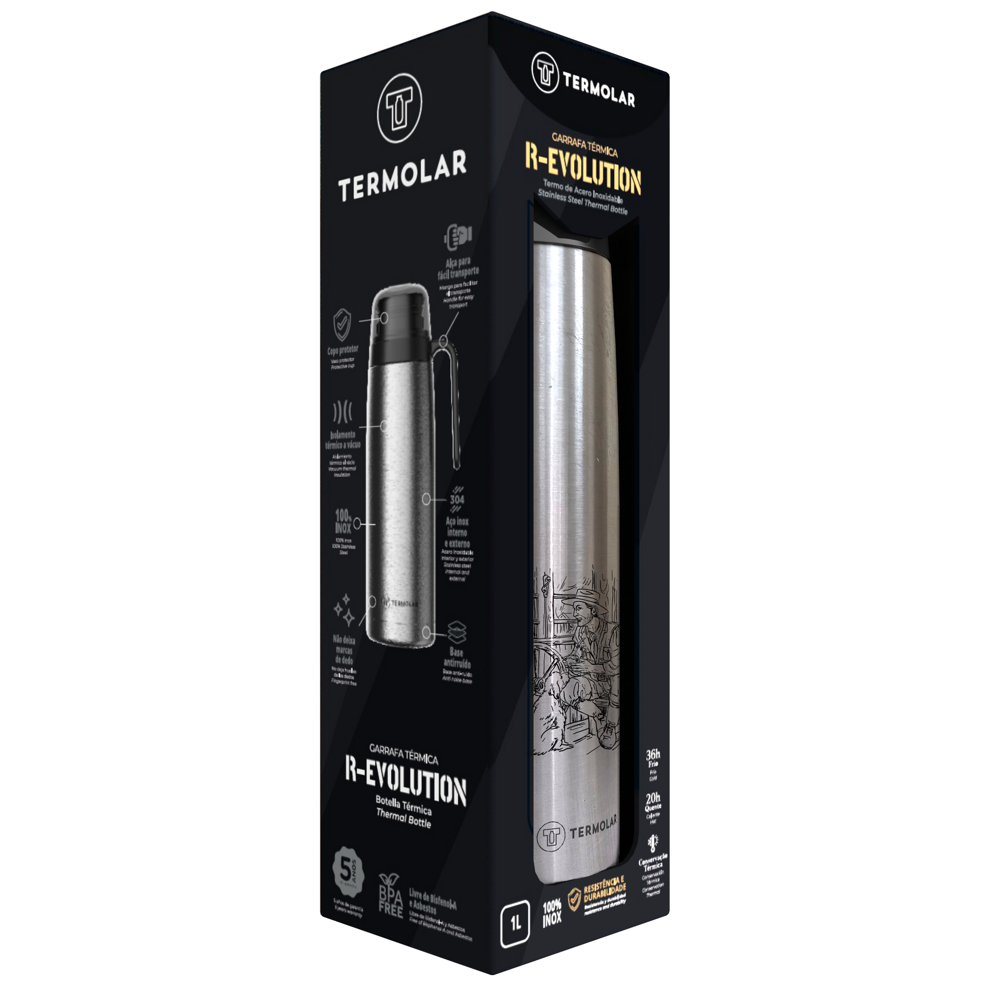 Termolar R-Evolution in der neuen Version click mate. Wie zuvor in der selben Qualität, aber mit neuem Deckel "click mate". Durch einen einfachen Druck auf den Deckel fährt der "pico cebador " einfach hoch und man kann das Wasser entspannt eingießen.
