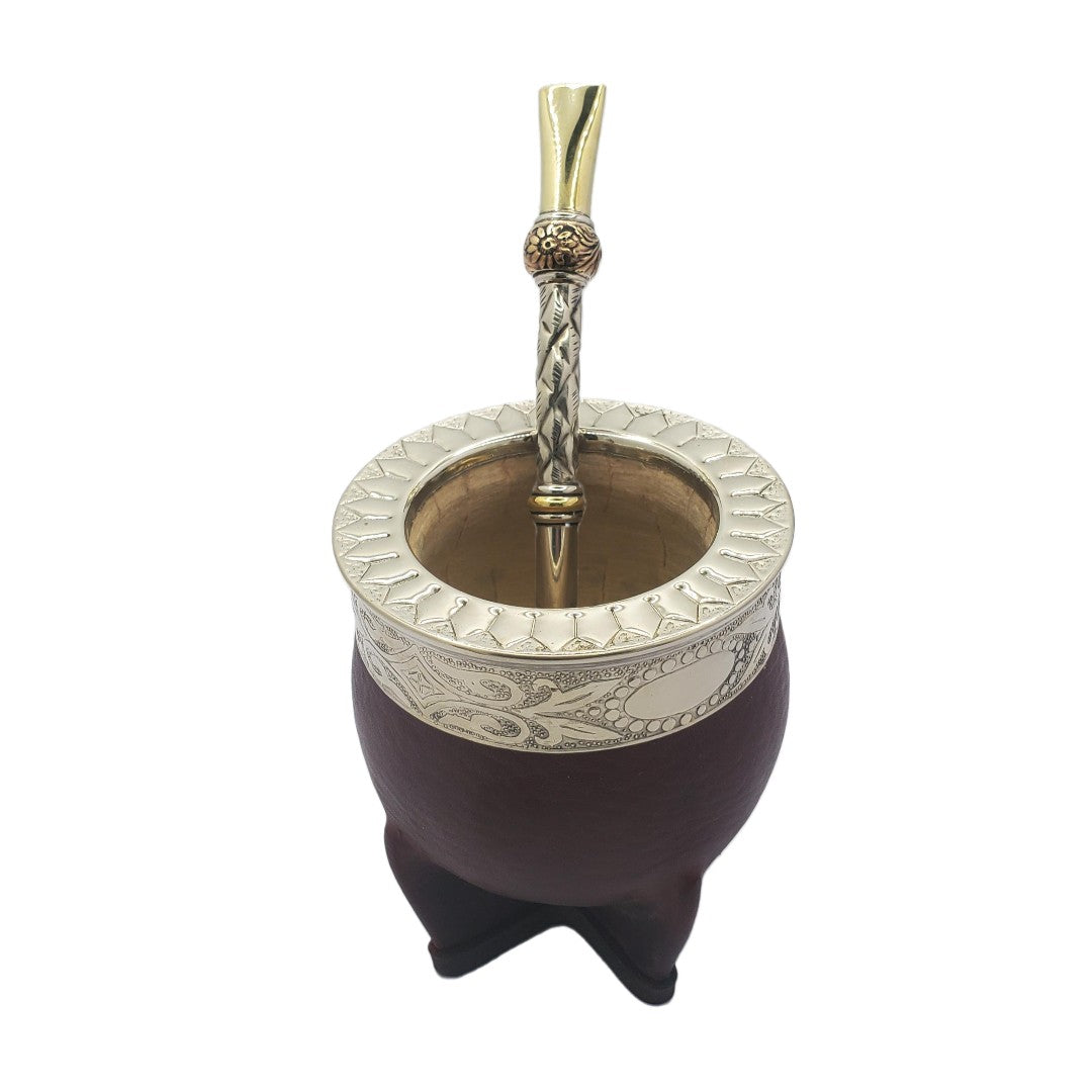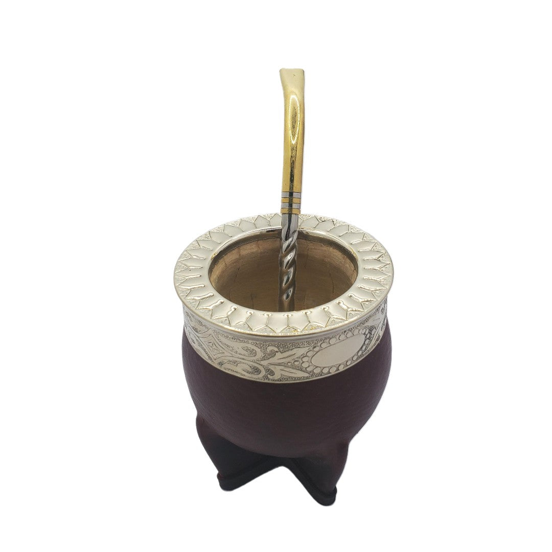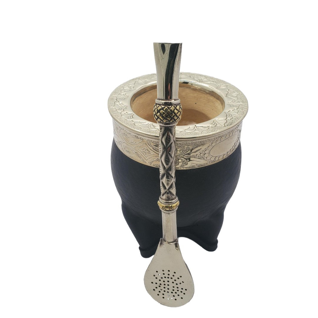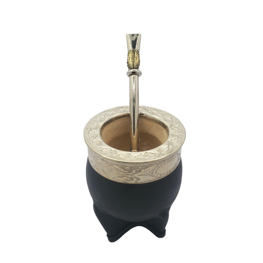 Mate Imperial aus Kürbis mit braunem oder schwarzem Leder und Bombilla nach Wahl.