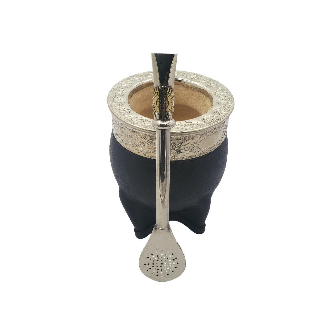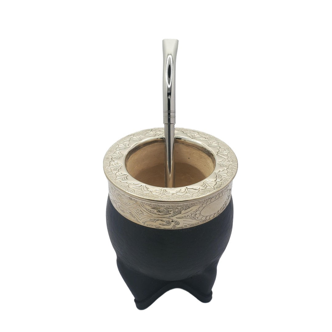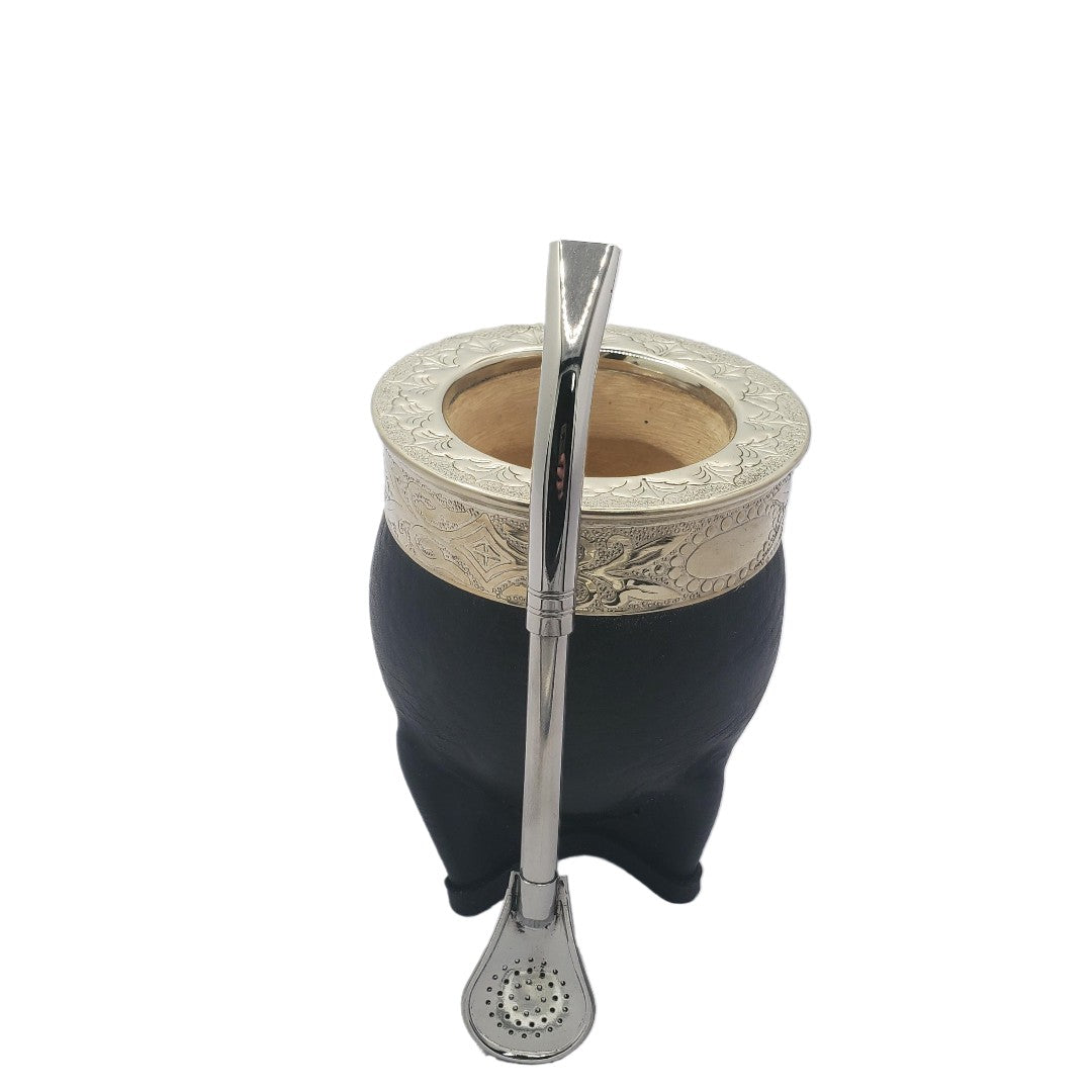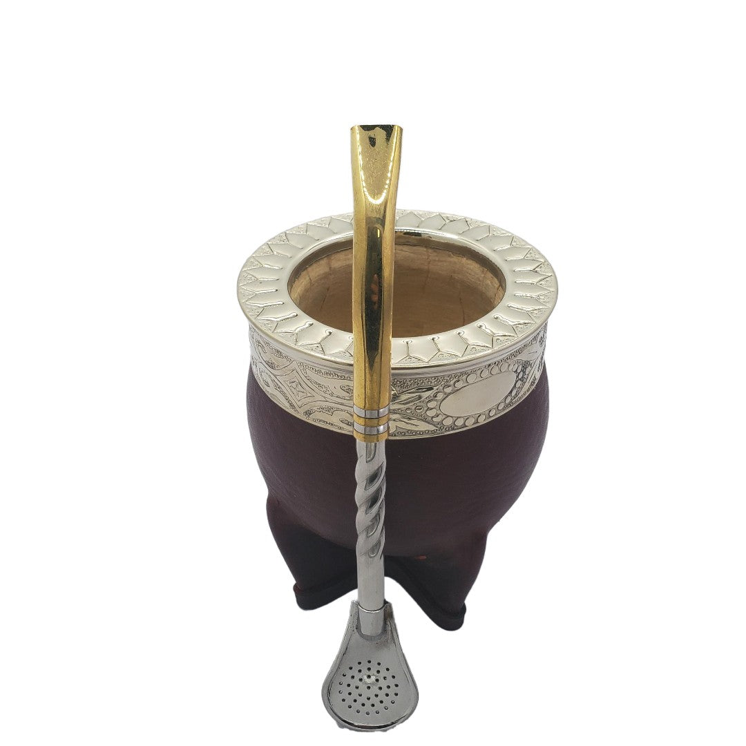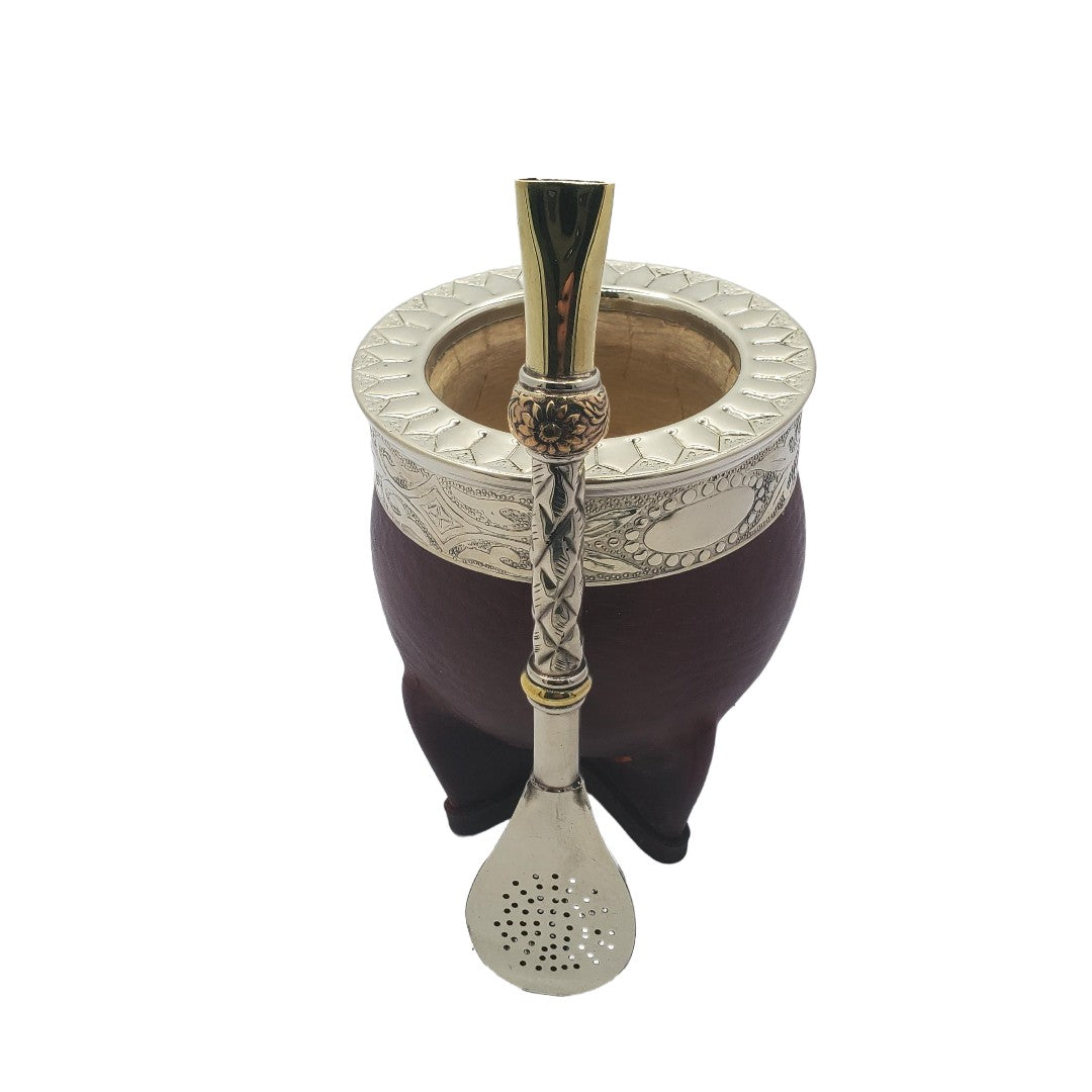 Mate Imperial aus Kürbis mit braunem oder schwarzem Leder und Bombilla nach Wahl.
