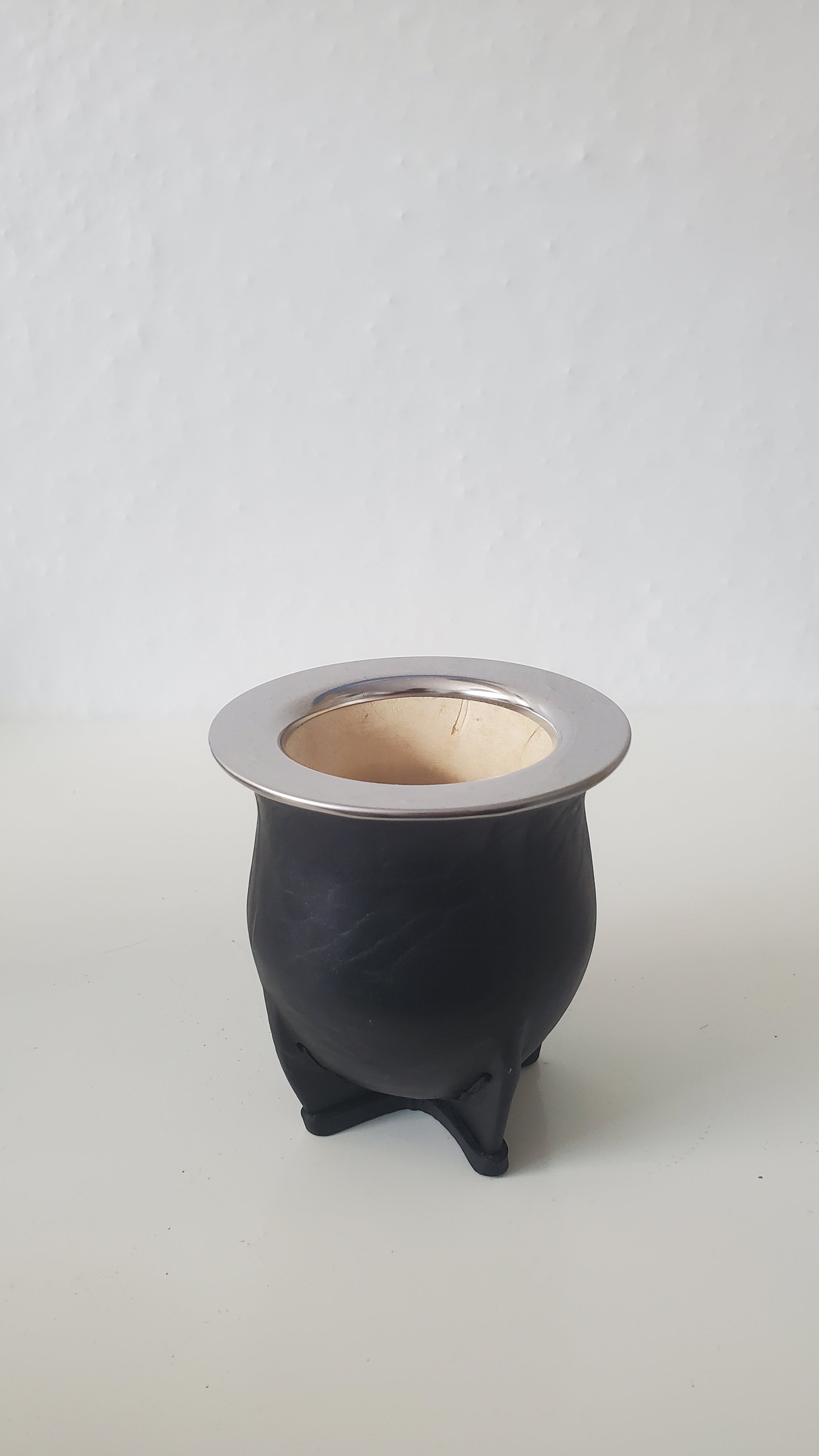 Er charakterisiert sich durch seine (im Gegensatz zum Imperial) weniger bauchigen und dafür etwas höher gebauten Form. Dieser Mate wurde in Argentinien handgefertigt, mit sehr feinem Kürbis im Inneren ummantelt von Kuhleder und die Zwinge des Matehals ist aus Edelstahl.